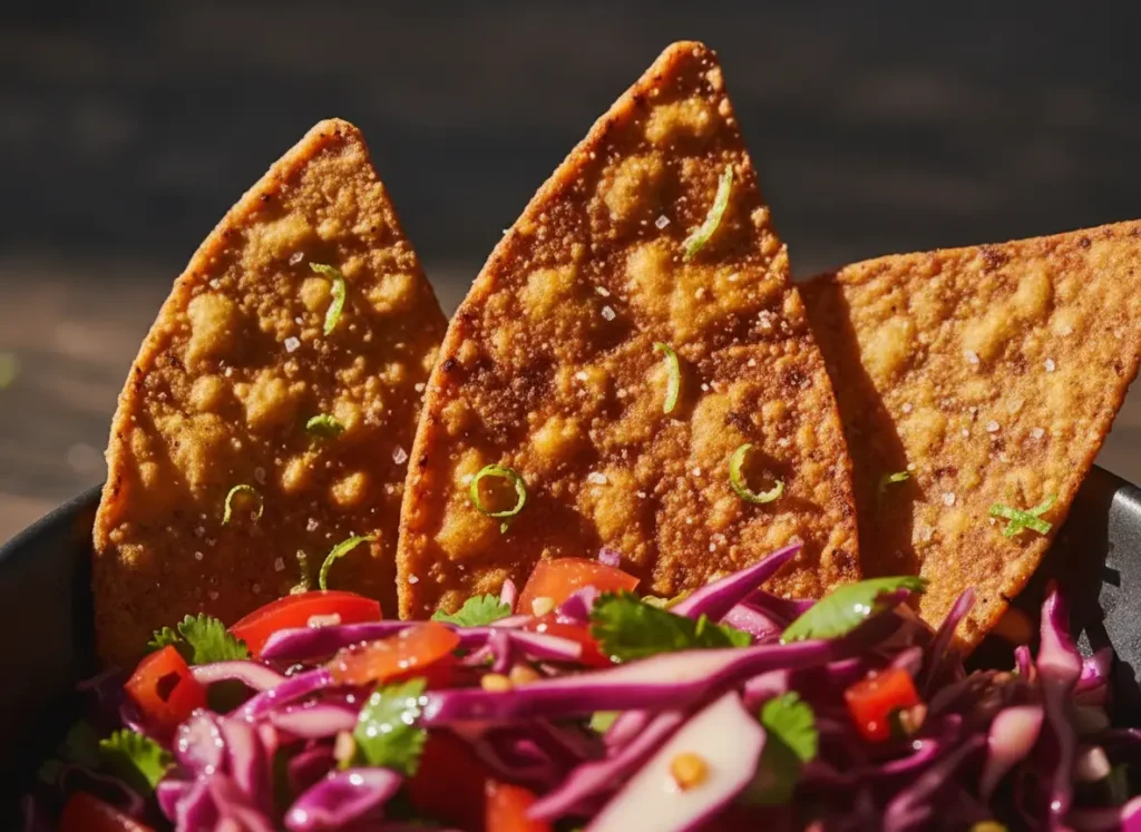 - The “Cabbage Crush” Dip: We serve these crystalline triangles with a side of Fermented Cabbage Salsa. The probiotic-rich, acidic “snap” of the cabbage brightens the rich, toasted chips and hits the 2026 trend for functional, gut-healthy snacking.
