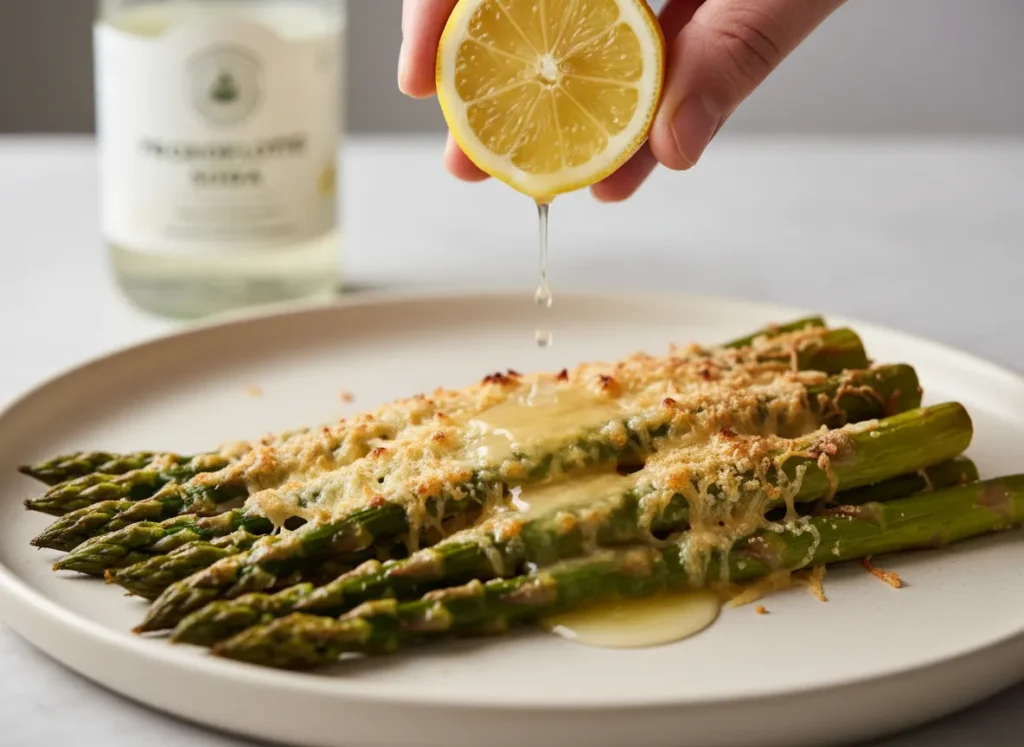 • The Acid (Fresh Lemon): A squeeze of lemon immediately after cooking brightens the greens and helps your body absorb the iron in the asparagus.