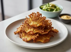• The “Cabbage Crush” Pairing (The Ginger-Soy Variant): We serve these crystalline fans with a side of Fermented Ginger-Soy Cabbage Slaw. The probiotic-rich, acidic “snap” of the fermented cabbage mixed with umami-heavy soy brightens the rich, toasted mushrooms and hits the 2026 trend for functional, gut-healthy snacking.