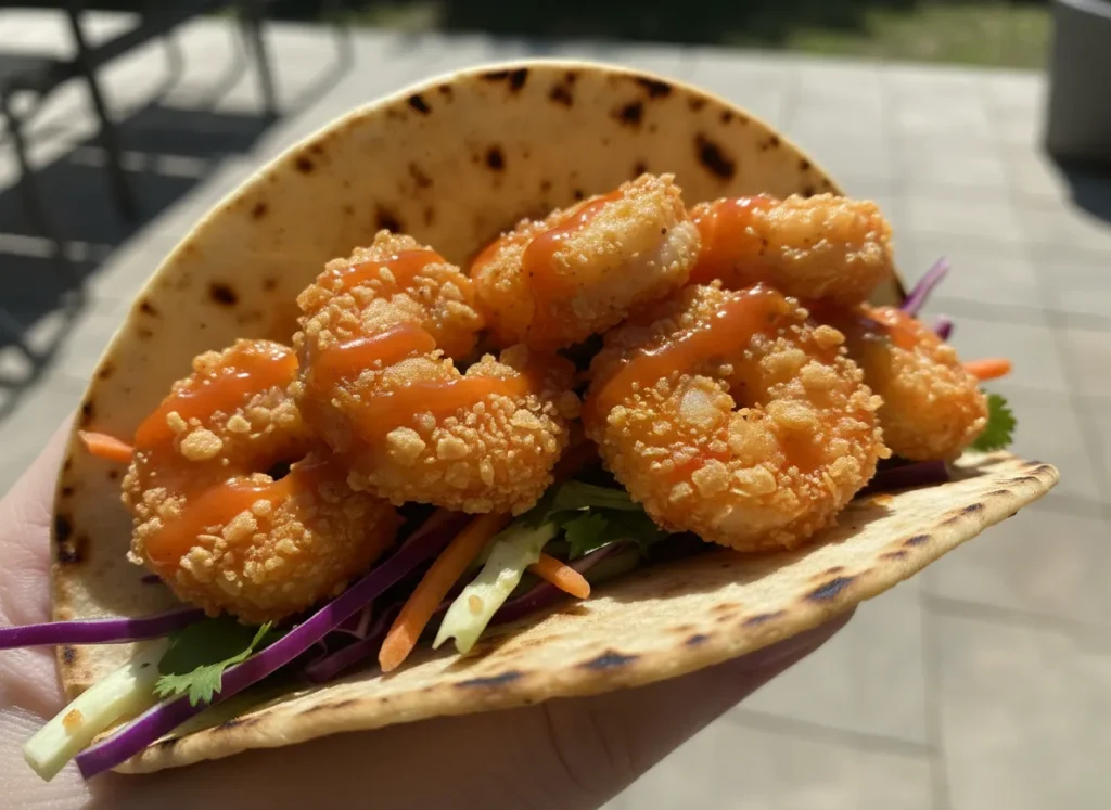 The first bite is a structural symphony—a sharp, crystalline crack of the cornstarch-encrusted shrimp, followed immediately by the cold, probiotic “snap” of the Cabbage Crush slaw. This is the maximalist taco experience: a collision of hot and cold, spicy and sweet, crispy and “Gimme Gummy.” The shrimp inside the shell are plump and “bouncy,” radiating a heat that is instantly tempered by a velvety, sriracha-mayo glaze that coats your tongue. This isn’t just a weeknight dinner; it’s a 2026 textural event that turns a bag of frozen shrimp into a high-octane feast.