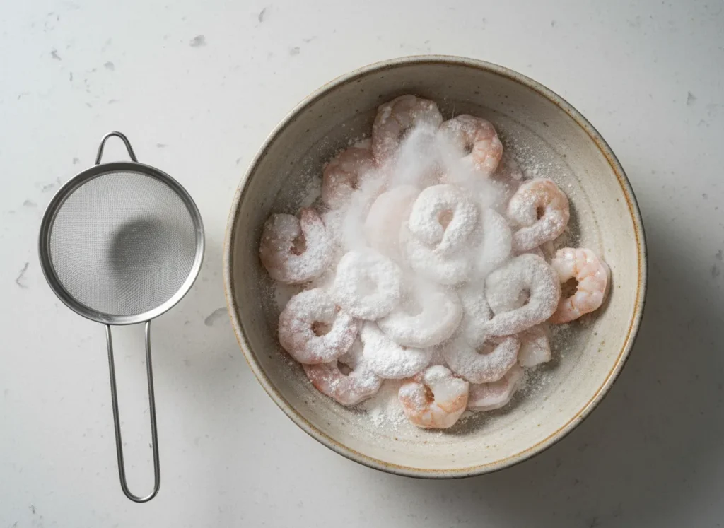 - The “Dry-Dust” Technique: Toss the shrimp in a bowl with cornstarch, then place them in a sieve and shake off the excess. You want a “maximalist” thinness, not a thick breading.