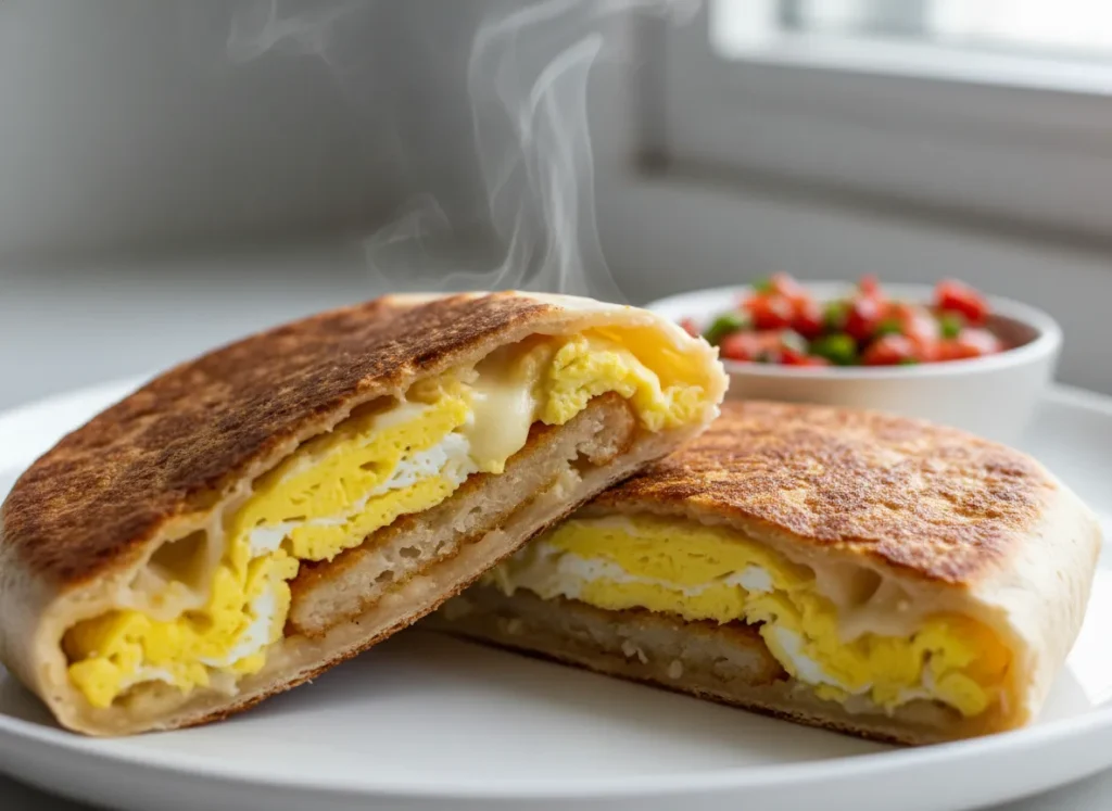We start with the “Assembly.” Lay your tortilla flat and layer the “maximalist” foundation: a dollop of Greek yogurt, a layer of bouncy eggs, a “shatter-crisp” hash brown, and a handful of cheese. Execute the “Fold-Lock” with precision, creating that beautiful hexagonal architecture.
