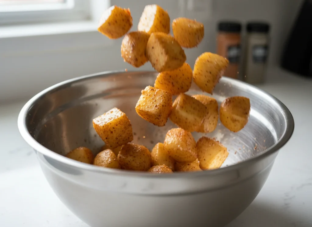 - Maximum Crunch Surface Area: By cutting the potatoes into small cubes, we create more edges to crisp up.