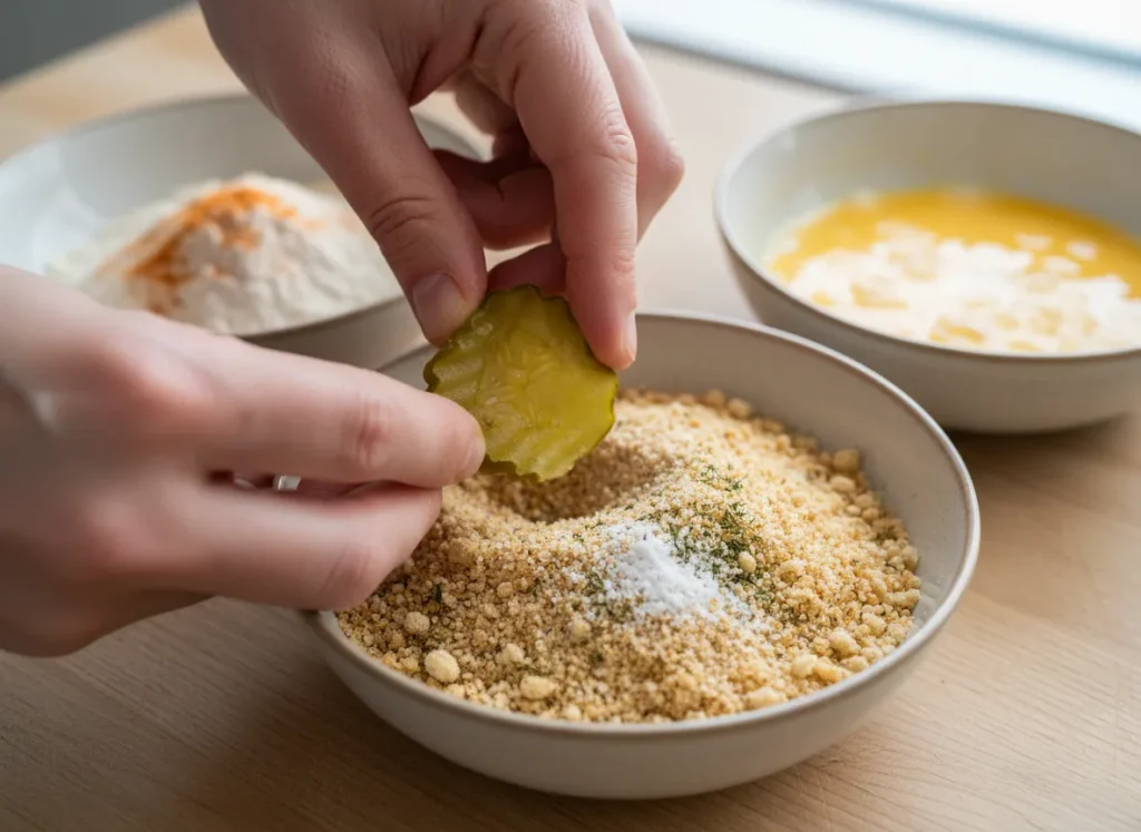 - Don’t Salt: Pickles are basically salt sponges. Do not add salt to the flour or Panko. They are salty enough!
